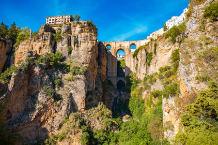 Ronda est une ville construite sur une falaise de 120 mètres, traversée par le canyon Tajo. Au milieu, le Puente Nuevo, un pont spectaculaire qui a pris plus de 40 ans pour être construit.