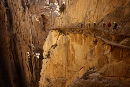 Le Caminito del Rey est la randonnée la plus célèbre d’Espagne. C’est un chemin à flanc de falaise, suspendu à plus de 100 mètres au-dessus du vide.