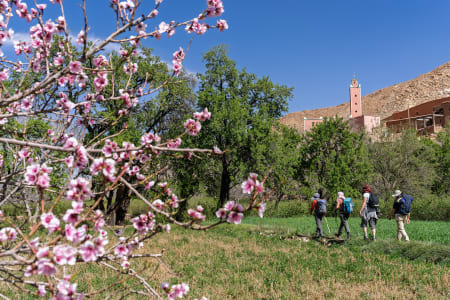 C'est ici, autour du village d’El Kelaâ M’Gouna, que l'on cultive depuis des siècles la célèbre rose de Damas, dont le parfum fleuri embaume toute la région au printemps. Alors, la vallée se transforme en une immense prairie rose, avec des champs de rosiers qui s'étendent à perte de vue et des habitants qui récoltent les fleurs à la main.